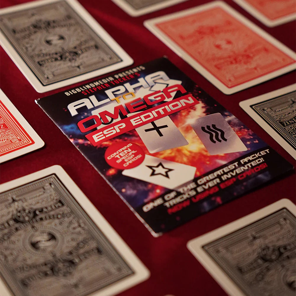 NOW STEPHEN’S MONSTER MENTAL MAGIC IS BACK, BUT REBORN WITH NEW AND SPECIALLY PRINTED ESP CARDS. Moving the original version from ‘card trick’ to something that no self-respecting mentalist can be without, Big Blind Media brings you ALPHA TO OMEGA: ESP EDITION!