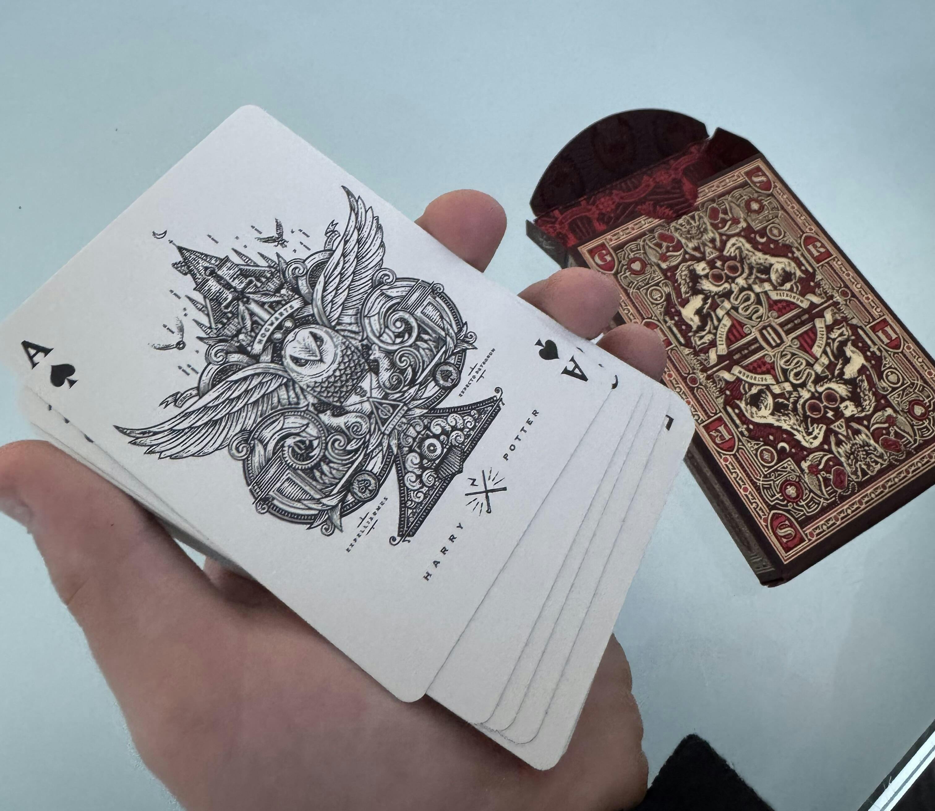 Harry Potter Playing Cards feature completely custom artwork in every aspect of the design, with the Aces, Jokers, box design, & court cards inspired directly by fan-favourite characters and events in the Wizarding World.