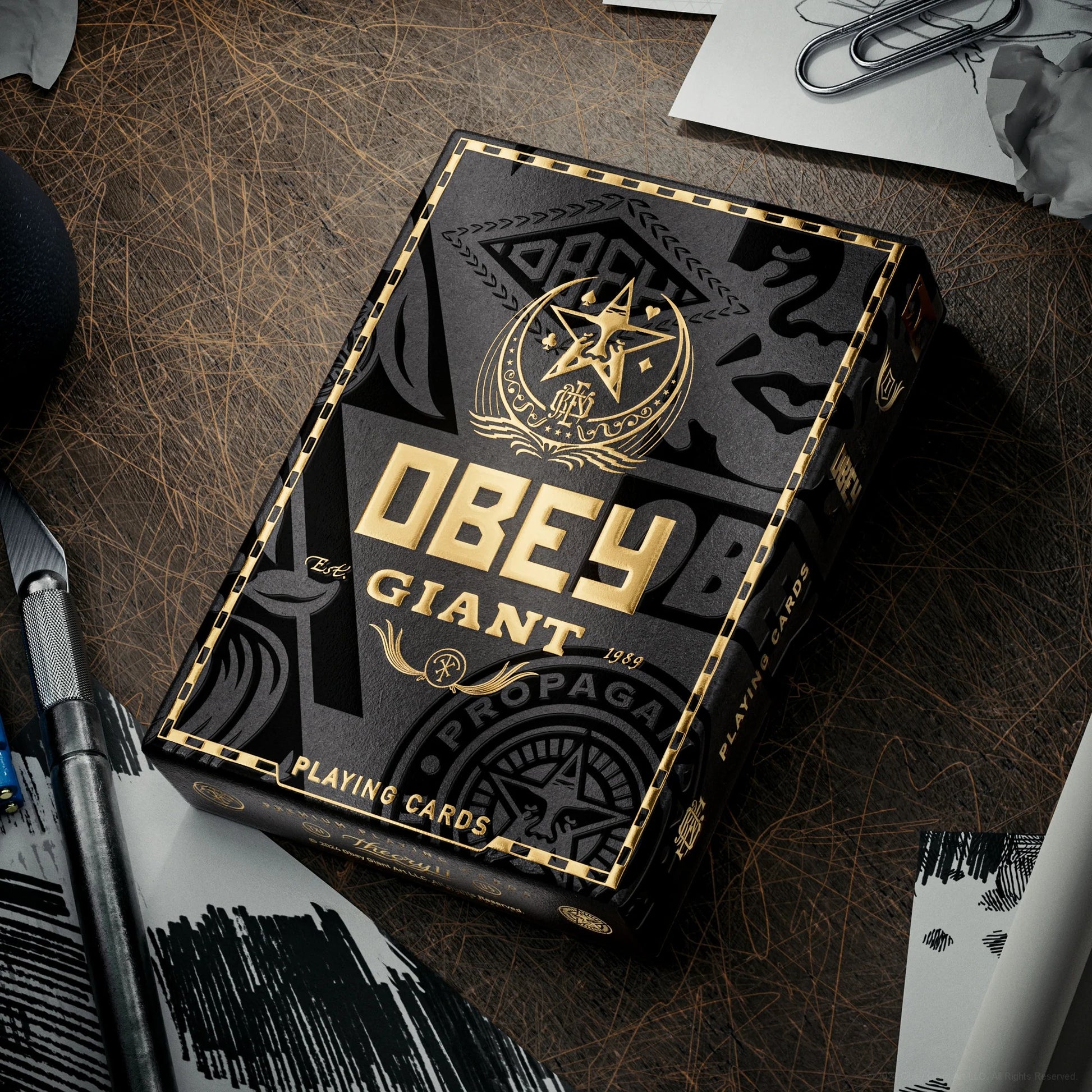 Premium playing cards produced in collaboration with Shepard Fairey’s Obey Giant. Available in red, gold and collage editions.