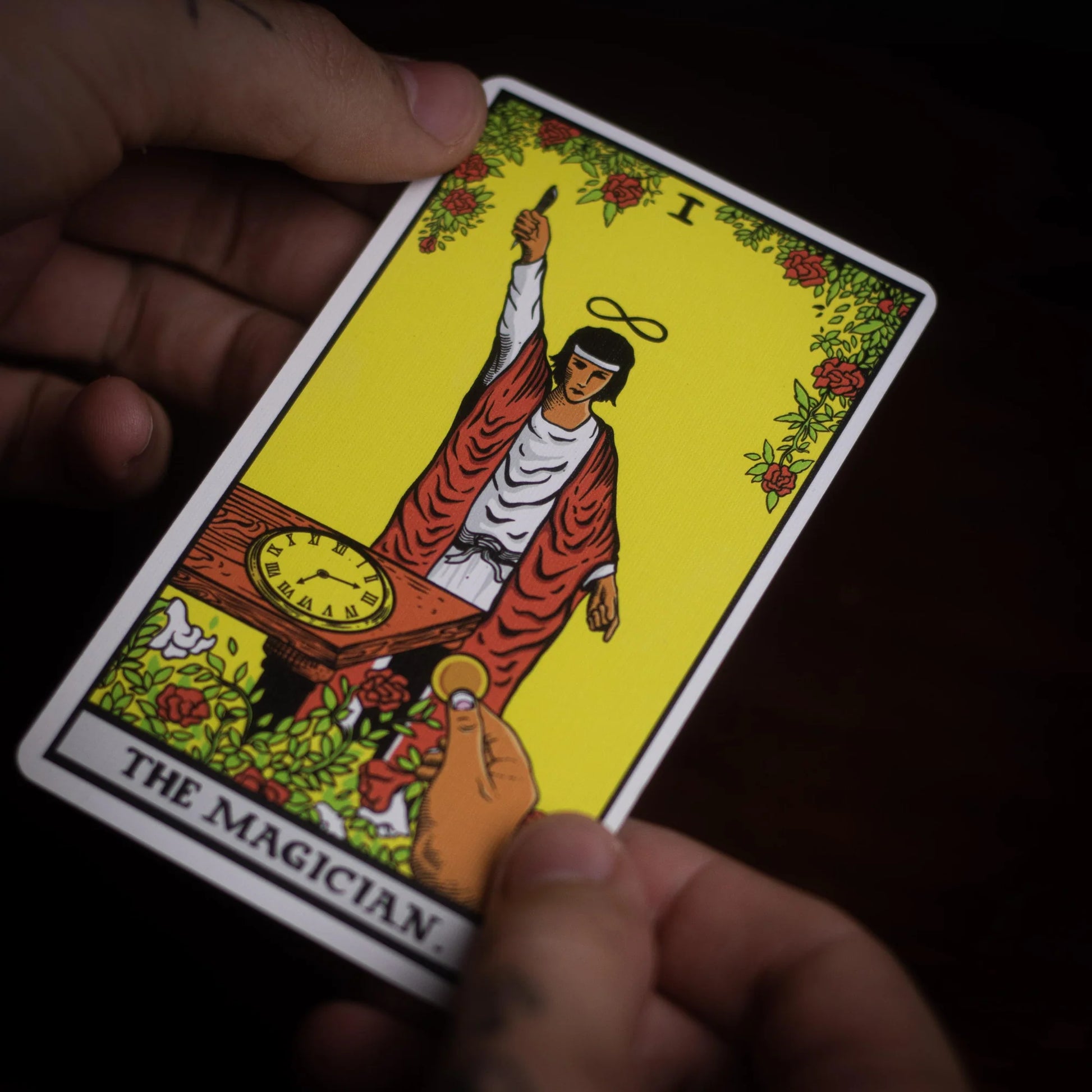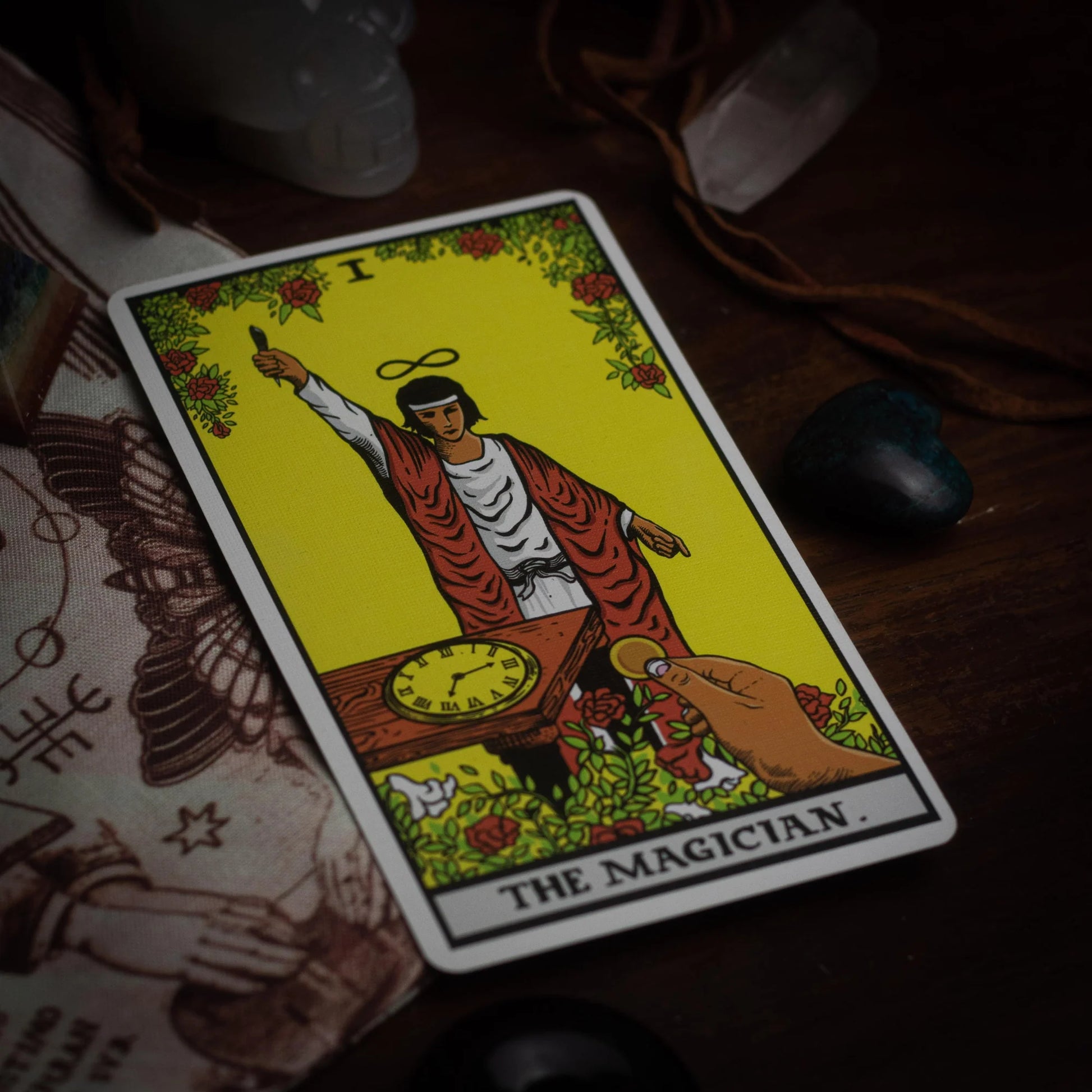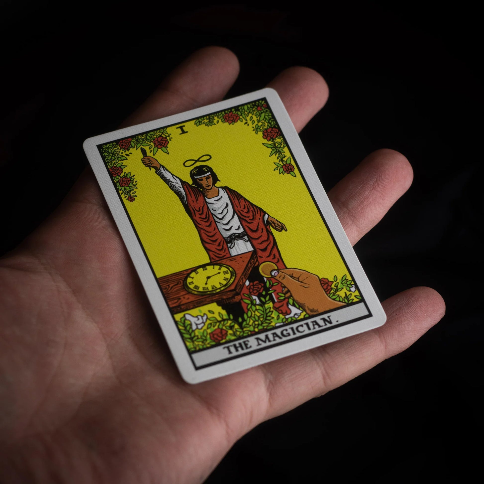 Upon opening your eyes, you turn over the card that's been in view from the beginning to reveal the traditional "Magician" tarot card with an artistic twist.